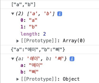 // {"a":"์์ด","b":"์"} <- ๋ฌธ์์ด์