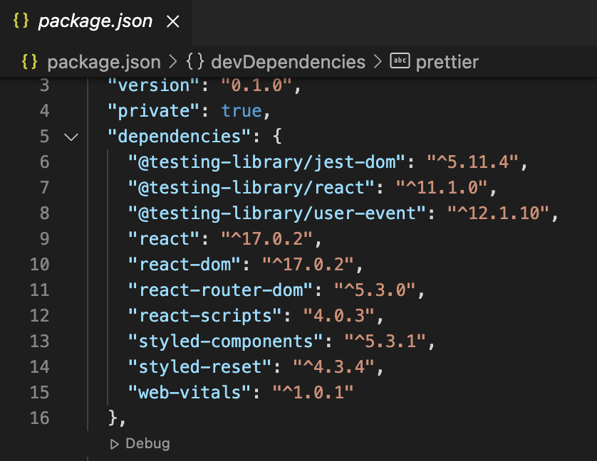 ❗️CRA(create-react-app)로 시작할 경우 ESLint는 기본적으로 설치되어 있다. (package.json에서 확인할 수 있음)
