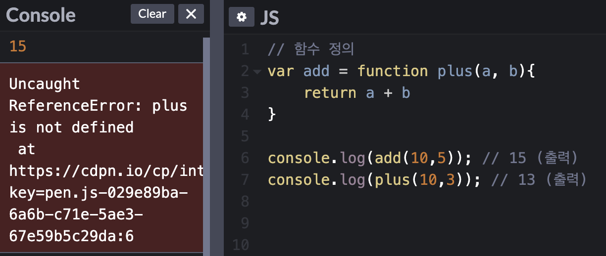 - js 함수는 하나의 값처럼 취급되므로 숫자나 문자열처럼 변수에 할당하는 것이 가능